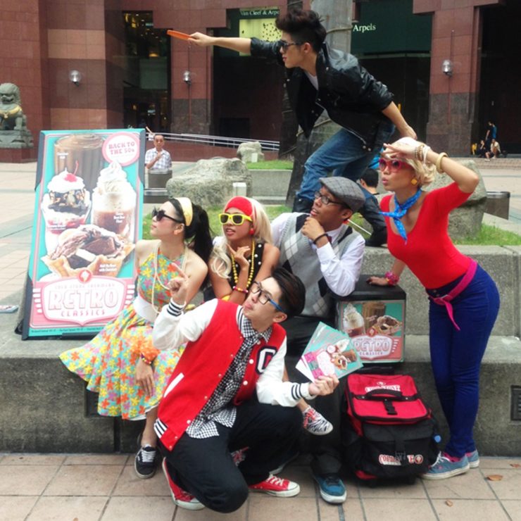 We’re bringing Retro back with a fun, interesting and interactive concept – our dancers entertain the crowd with their slick moves whilst promoting Cold Stone Creamery Retro Sundaes.